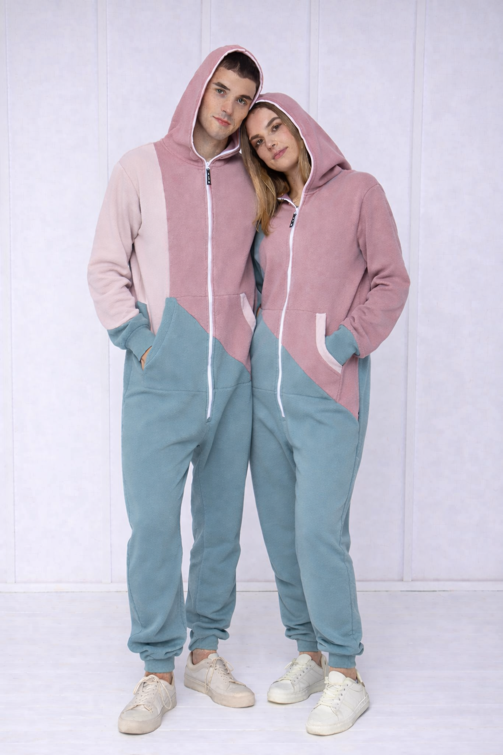Matching Couple Tricolor Vintage Jumpsuit – Unisex Romper, Cozy Valentine’s Day Gift (Set of 2 pcs.)